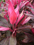 An evergreen shrub with lance-shaped leaves that are spirally arranged on a slender trunk. The leaves are bright pink to burgundy to green in colour. Flowers occur as panicles of scented flowers.