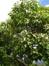 A medium-sized tree, with a spreading, irregular, dense canopy. The bark is grey-brown, fairly smooth with fine vertical lines. The leaves form silvery, maple-like foliage. Flowers occur as small clusters in cream white. it forms a spherical fruit with a hard shell.