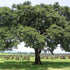 A tree with a heavily branched, spreading, umbrella-shaped or rounded crown. The trunk branches is curved or crooked. It has large oval, leathery and dark green leaves. The underside of leaves is covered with soft brown hairs, the upper surface may be slightly sandpapery. It has white, showy, funnel shaped flowers that are sweetly scented. The fruit is small, round turning yellow-orange.