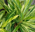 Herbaceous perennial tall and row in upright clumps from heavy, fleshy rhizomes that look like that of culinary ginger. The rhizomes produce stout arching stems with evergreen leaves. It has dark green and yellow, lance-shaped leaves up to 2 feet long which grow at intervals along the stems.