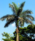 An elegant palm tree with a straight trunk crowned by tall arching feather-like fronds. Each frond is dark green and is composed of drooping leaflets. The smooth trunk bears leaf scars. It produces creamy flowers that develop into hanging clusters of yellow orange fruits.